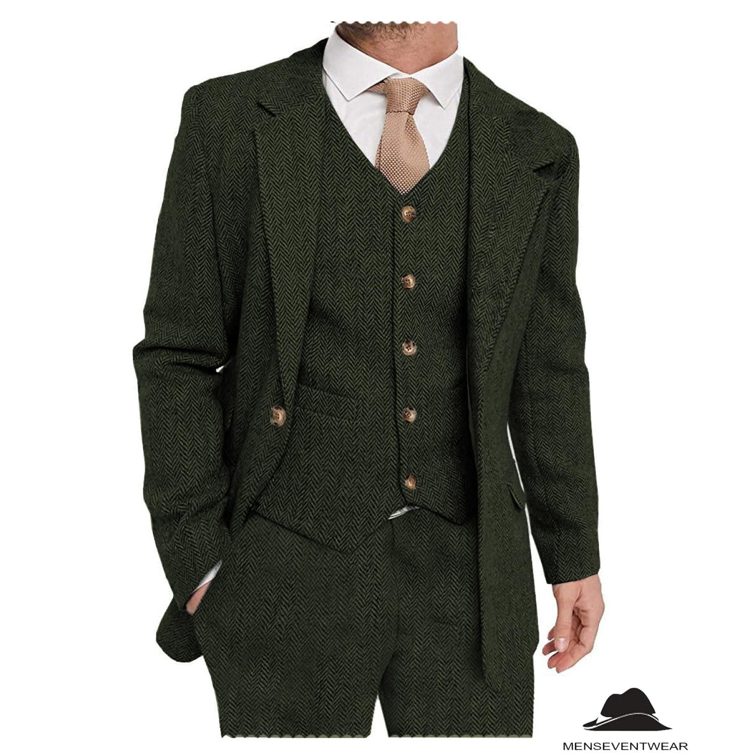 Menseventwear 3 Pieces Mens Suit Classic Herringbone Notch Lapel Tuxedos (Blazer+vest+Pants)