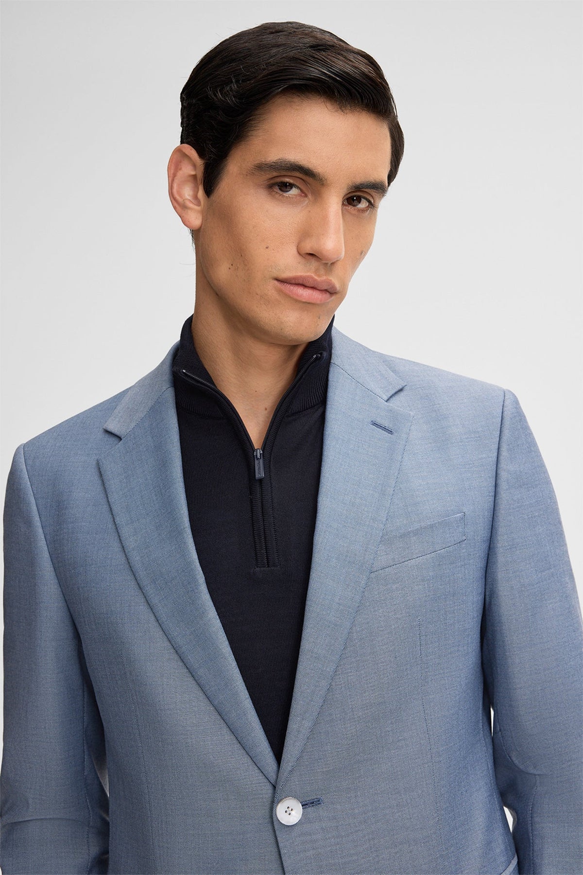 This men's suit set, composed of 35% rayon and 65% polyester with a flat texture, includes a blazer, a vest, and pants. The blazer has a peak lapel and center vent, secured by a single button, and features 2 flap pockets, 1 welt pocket, 1 inside pocket, along with sleeve slits having 4 cuff buttons and is fully lined. The vest sports a V-neck, 2 welt pockets, is single-breasted with 6 buttons, and has a back metal elastic adjustment buckle. The pants come with a zipper closure, 2 hip pockets, and 2 seam pockets. The suit can be machine or hand washed. Color or size customization can be requested by noting it in the order, making it suitable for formal or semi-formal events.