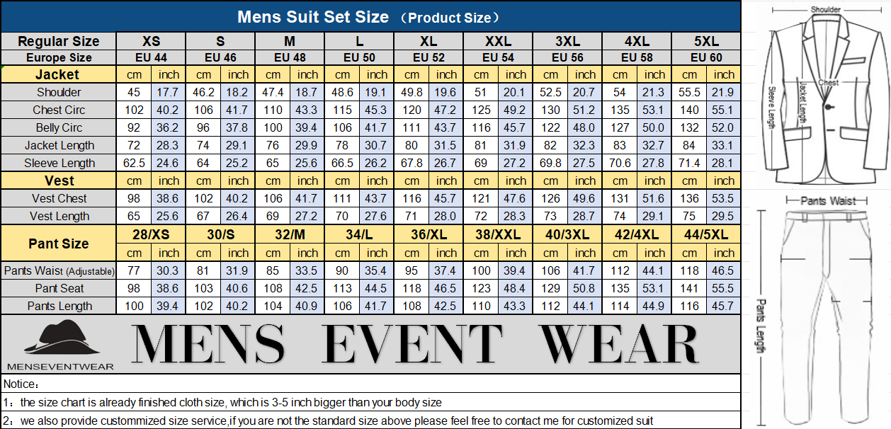 3 pieces suit / 2 pieces suit / blazer Size Chart