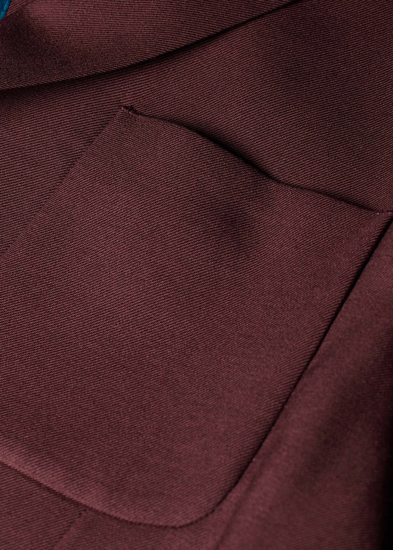 This men's suit is made of a blend of 35% rayon and 65% polyester, which is comfortable and durable, showing a simple yet elegant design. The suit jacket is designed as a classic double-breasted style with 4 exquisite buttons, showing a capable business style. The collar is designed as a peak collar, and the side slit details increase the overall dynamic and breathability. The jacket also has two flap pockets, a chest opening and an inner pocket, which is both practical and adds a sense of detail. The cuffs are designed with four3 piece buttons, highlighting the delicate craftsmanship.